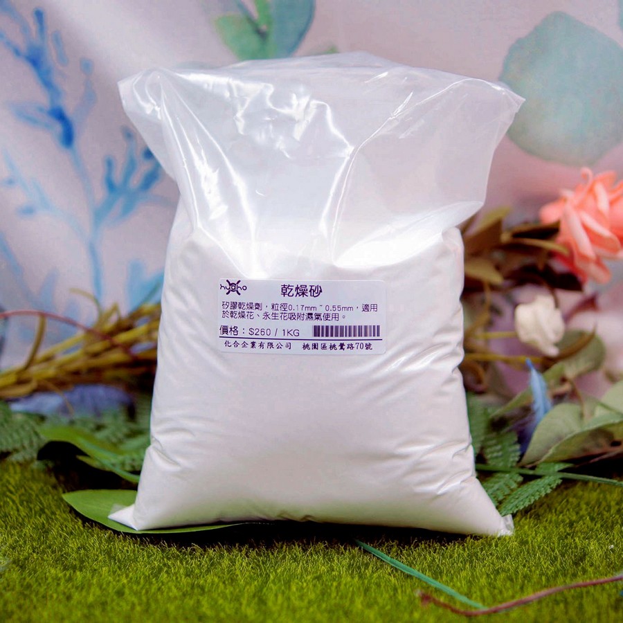 矽膠乾燥劑,粒徑0.17mm~0.55mm 適用於乾燥花、永生花吸附濕氣使用。 可加熱烘乾後重覆使用。